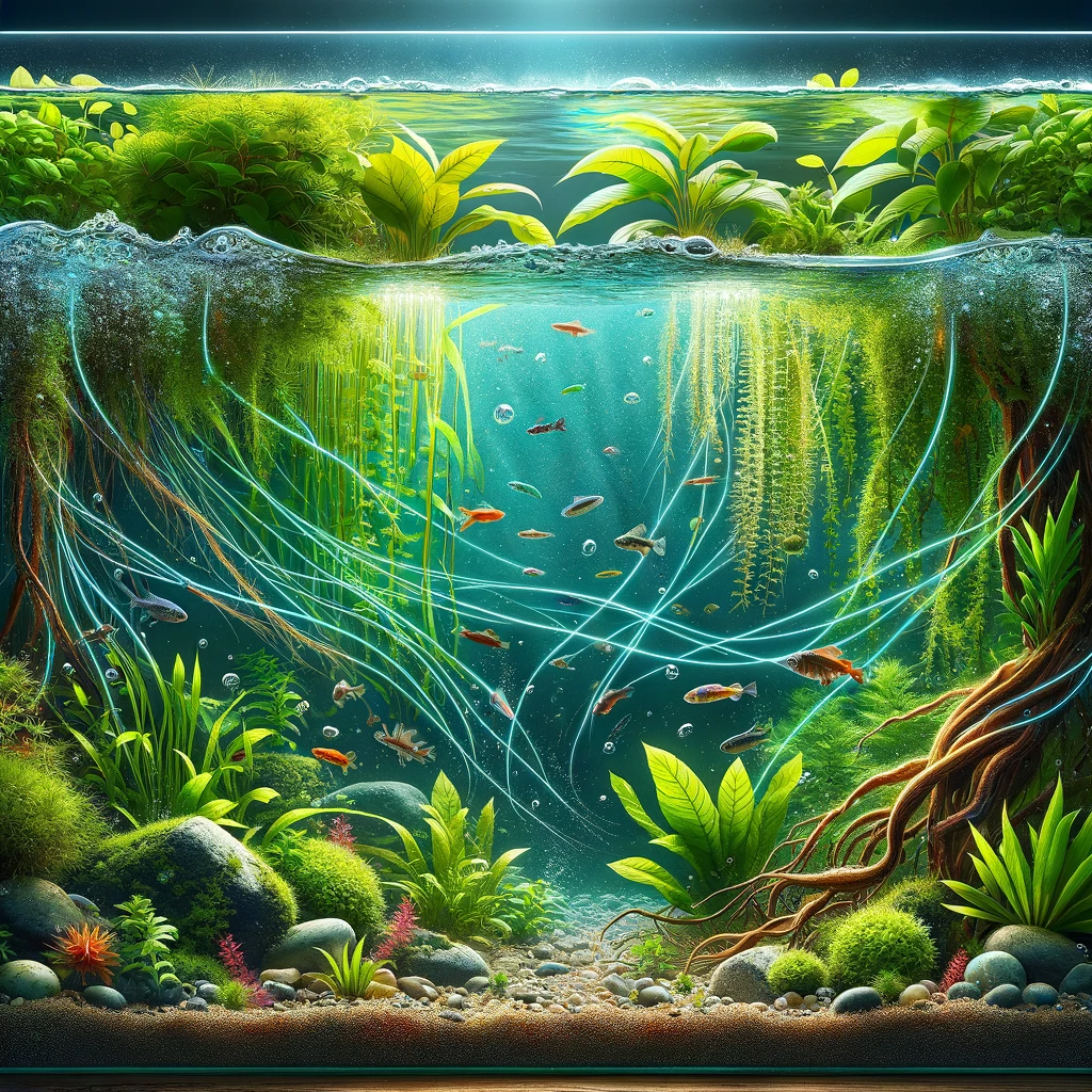 Okrem estetických výhod, živé rastliny prispievajú k čistote vody tým, že absorbujú amoniak, nitráty a fosfáty.
