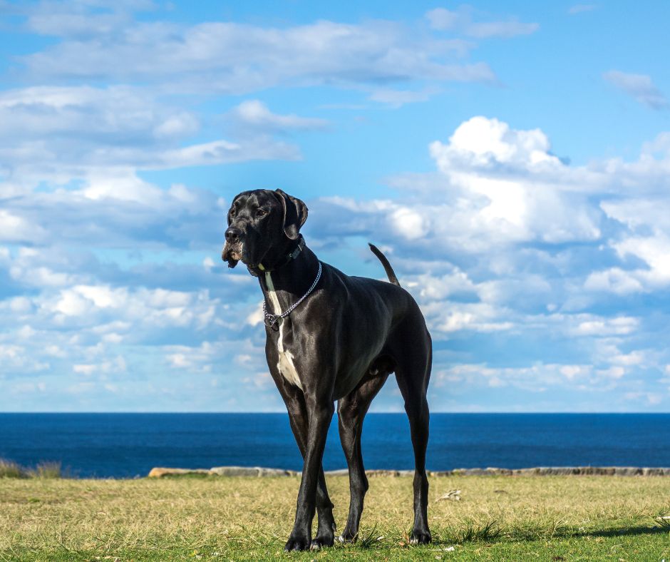 Nemecká doga, tiež známy ako Great Dane, je jedno z najvyšších plemien psov na svete. Majú hladký a lesklý kabát, ktorý prichádza v rôznych farbách, vrátane modrej, čiernej, harlekýnskej a plavanej. Sú známe svojím mierumilovným temperamentom a veľkou lojalitou.